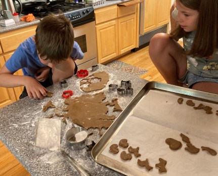 There was lots of water play in the back yard, resulting in burned shoulders. And a big batch of gingerbread for cutting out with my new tiny animal cutters.