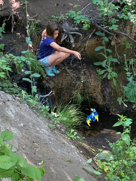 I spent six nights last week at Pippin’s Mountain Homestead, longer than any other visit. That gave me time to go with the children to the library and to have a breakfast picnic in their favorite park that features a tiny waterfall and “jungle.” Ivy made her dragon to fly over the creek, and I discovered chicory and more.