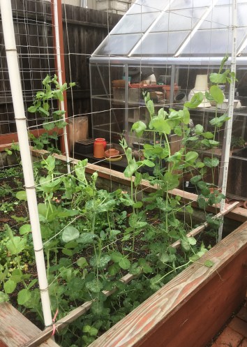 That’s my own chard and collards in the picture above, the leaves that were not eaten by insects or mollusks; I picked almost all of my greens and now my own little squash plants are spreading out in the planter boxes. Recently I transplanted the tarragon out of a pot into one of those boxes where it will get more regular watering, and it is thriving.