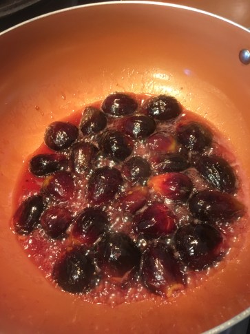 The fig harvest continues gloriously. I’m giving them away, and finding recipes that I can use to turn them into something freezable to use later. This picture below is of Honey Fried Figs, a simple sauteing in butter and honey, which makes a kind of preserve to serve on its own or as a topping for ice cream. 🙂