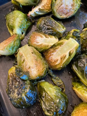 Every person in a large family at church was sick recently, which gave me the opportunity to have fun in the kitchen, making dinner for them one day. Most of the time I am trying, usually in vain, to cook for one, and eat for one. It seems impossible to learn, and not that enjoyable. So I made the most of this occasion to cook big batches of lots of dishes, enough for leftovers. It was the perfect day to make lemon curd, and I roasted both onions and Brussels sprouts, keeping back half for myself.
