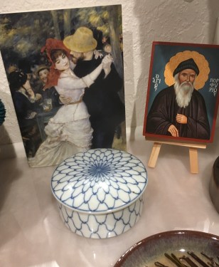 On the dressing table right now I have a Valentine’s Day card I gave to my husband a really long time ago; and an icon of St. Porphyrios.