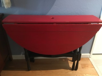 I have so many interesting little tables that I am fond of for various reasons. This one is a hundred years old at least, and used to live at my husband’s family’s summer cabin. I have never known it as the patio table it was obviously designed to be; it always sits along a wall as a shelf, and is known to be wobbly on its own. But I will probably keep on keeping it, at least while I am in a big house.