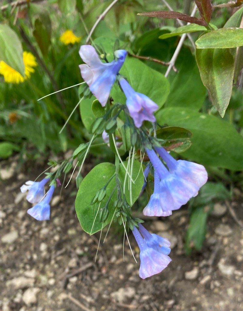 Her hydrangeas are gigantic — and I saw others in the area that are just as impressive. Along the side of her driveway, and in big pots, a multitude of plants all grow thickly and complement each other; she doesn’t know the names of them all. She showed Izzy and me this Blackberry Lily, iris domestica, displaying its seeds — something different!