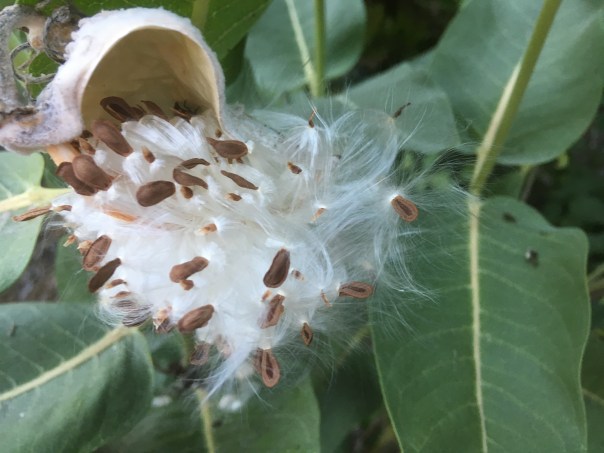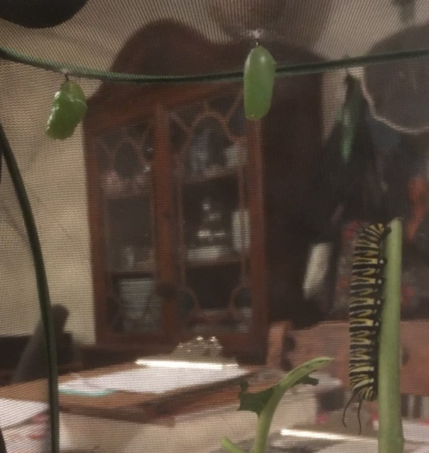 Much earth and earthiness, fruitfulness, and aromas from it all, here on September 1st. I have been gardening a lot, soaking up the heat, collecting seeds, and ripping out vegetables that are done in by “pests,” those other hungry creatures who enjoy my garden. In a few days, God willing, my Monarchs will emerge from their delicate green chrysalises. In the meantime, other insects have been patiently posing for me.